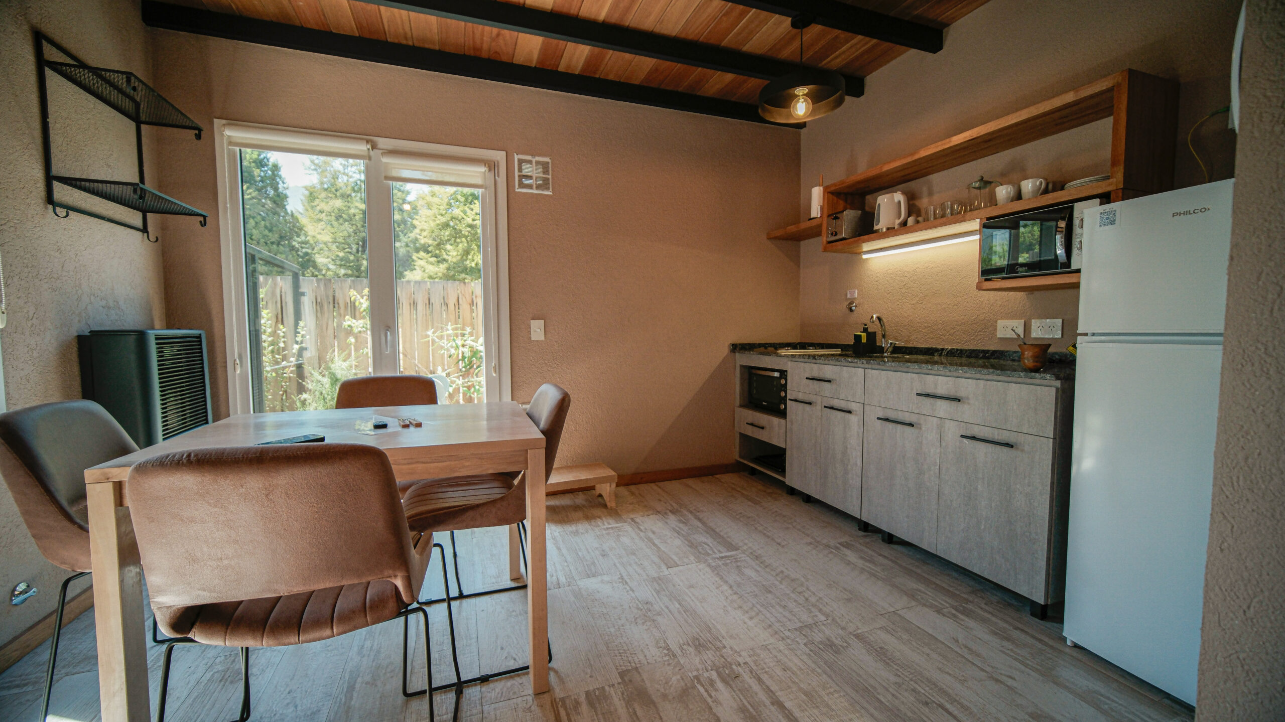 Como alternativa al complejo de cabañas en el campo, ofrecemos departamentos completamente equipados para 2, 3 y 4 personas ubicados en pleno centro de Villa La Angostura, cerca de restaurantes, bares y los mejores comercios.